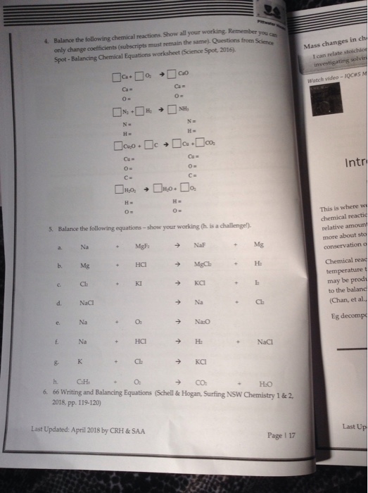 The video includes six chemical equations. A comprehensive guide on mastering how to balance chemical equations, including guided practice problems. Balancing chemical equations learn with flashcards, games and more — for free. Download the pdf of the worksheet here. Balance the following chemical equation: